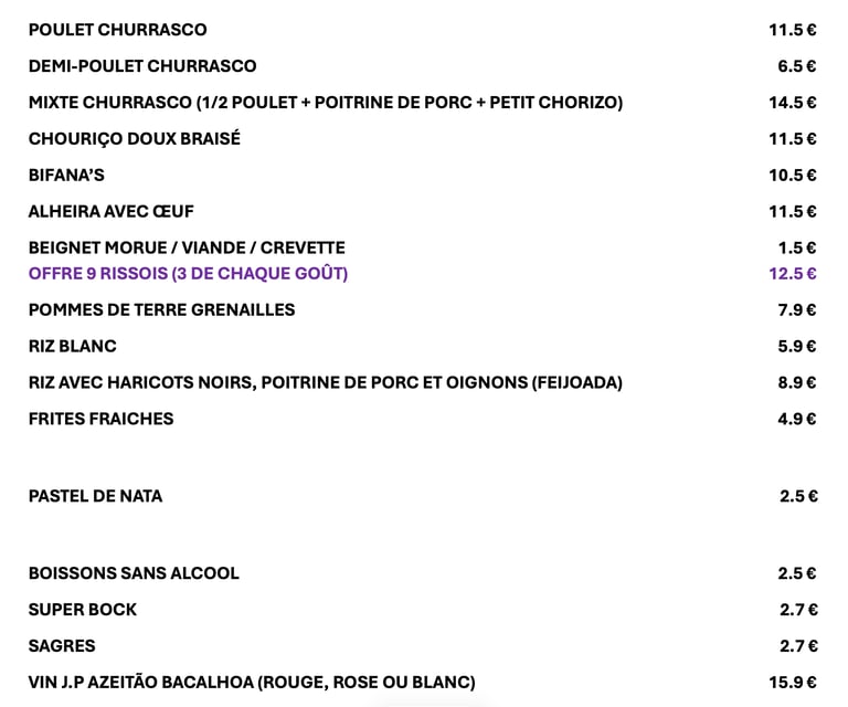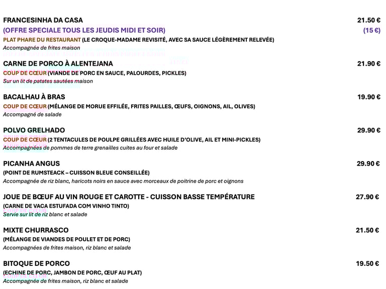 PLAT : CHOIX ENTRE 4 PLATS À LA CARTE